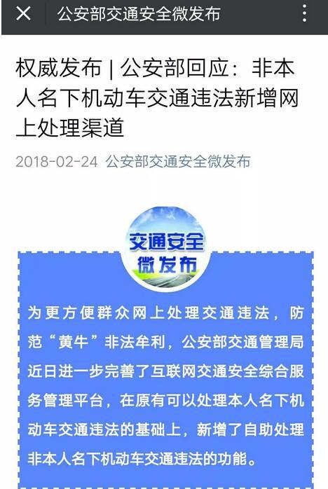 此次平台完善后,需要自助处理非本人名下机动车交通违法的驾驶人可通过“交管12123”APP进行。驾驶人可自主选择在交通违法处理窗口或者通过“交管12123”备案非本人名下的机动车,备案后,可以处理自备案之日起发生的有记分且单笔罚款金额不超过200元的交通违法行为。